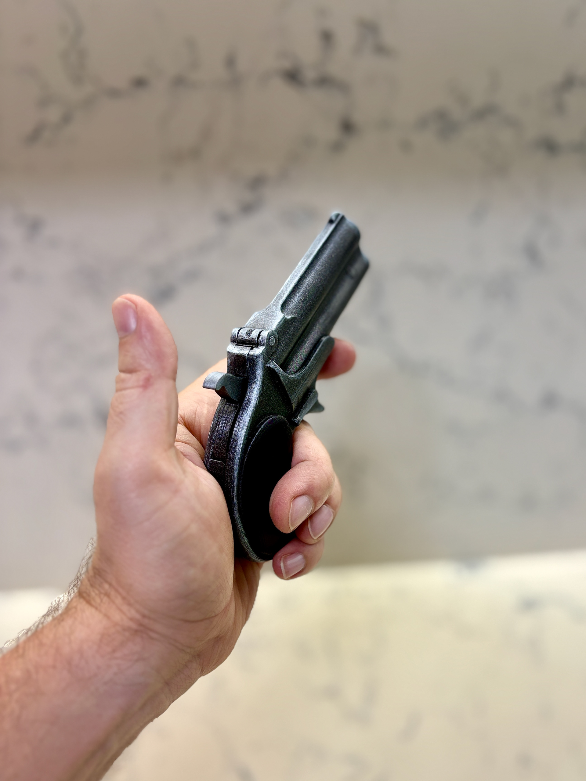 Derringer 1866 is an iconic example of compact 19th-century firearms. Known for its small size, elegant design, and instantly recognizable silhouette, it is closely associated with the Wild West era. Despite its tiny dimensions, the Derringer was widely used as a concealed self-defense weapon.