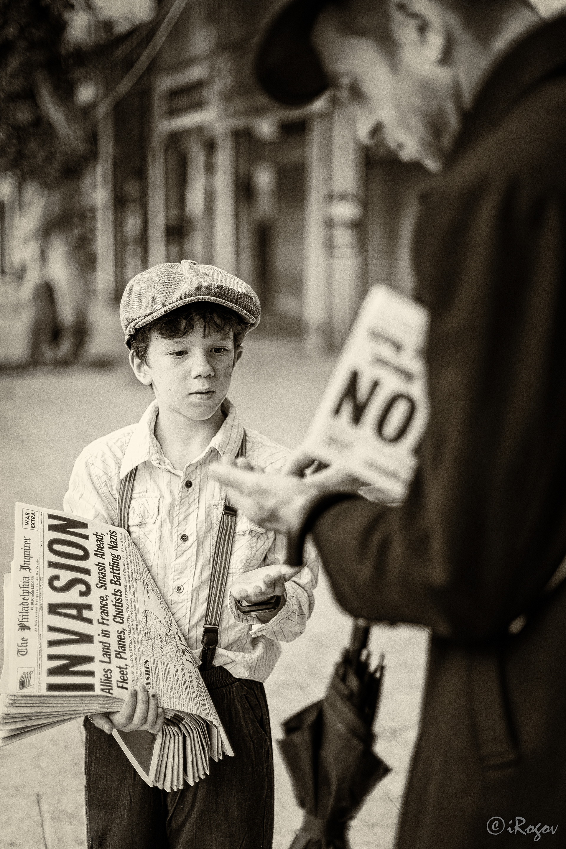 Early June 1944, Philadelphia, newspaper boys report the beginning of the Allied invasion into Nazi-occupied Normandy. Credits: Our permanent models, are the Beigelman family, Starring Ilyusha, Maya and Kostia.