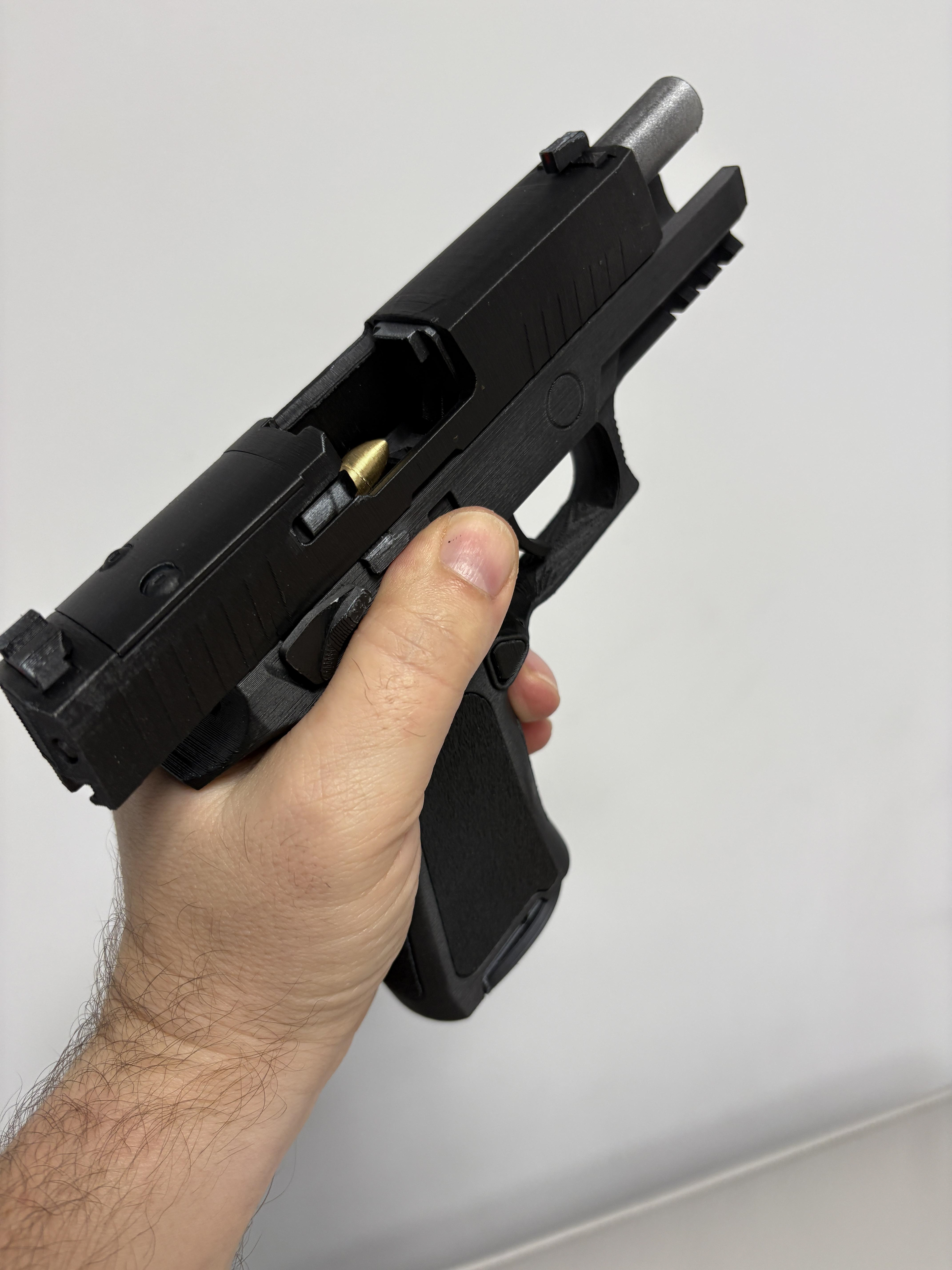 For this project, I created a highly detailed, durable, mechanically functional 3D-printable P320 designed for filmmaking, cosplay, and active prop use.