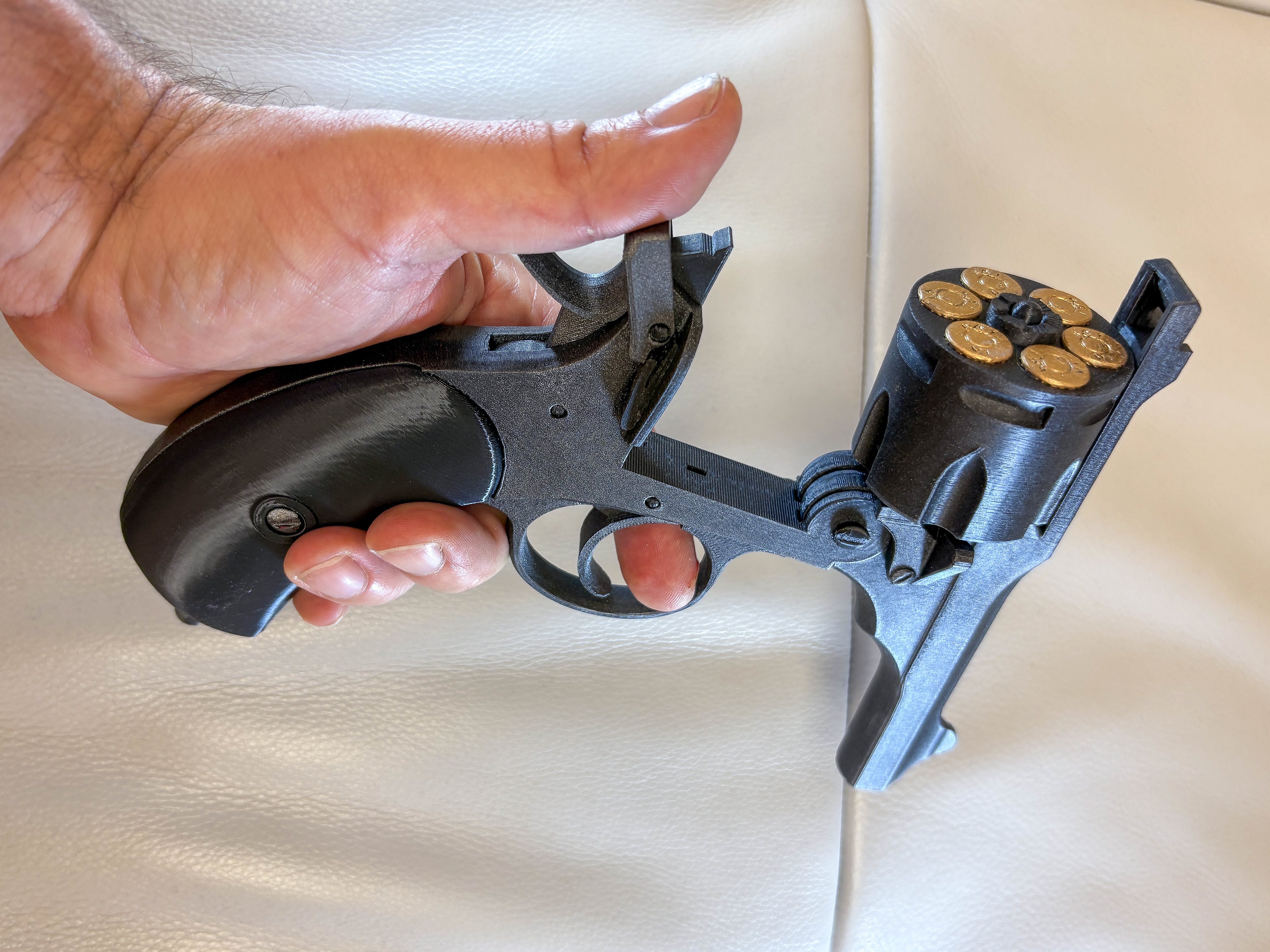 Its slow, deliberate mechanics photograph beautifully: the hinge breaking open, the cylinder tilting forward, the soft clink of brass.